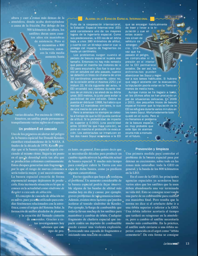 lee con atención la siguiente lectura sobre la basura espacial y realiza las siguientes actividades en hojas blancas.